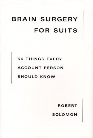 For just that reason – and for $1 – I recently picked up Brain Surgery for Suits: 56 Things Every Account Person Should Know (which I since discovered is now known as The Art of Client Service and is in its third edition) by Robert Solomon. It was a slim volume but looked likely to have some relevant and universal insight and advice – even with a publication date of 2000.
